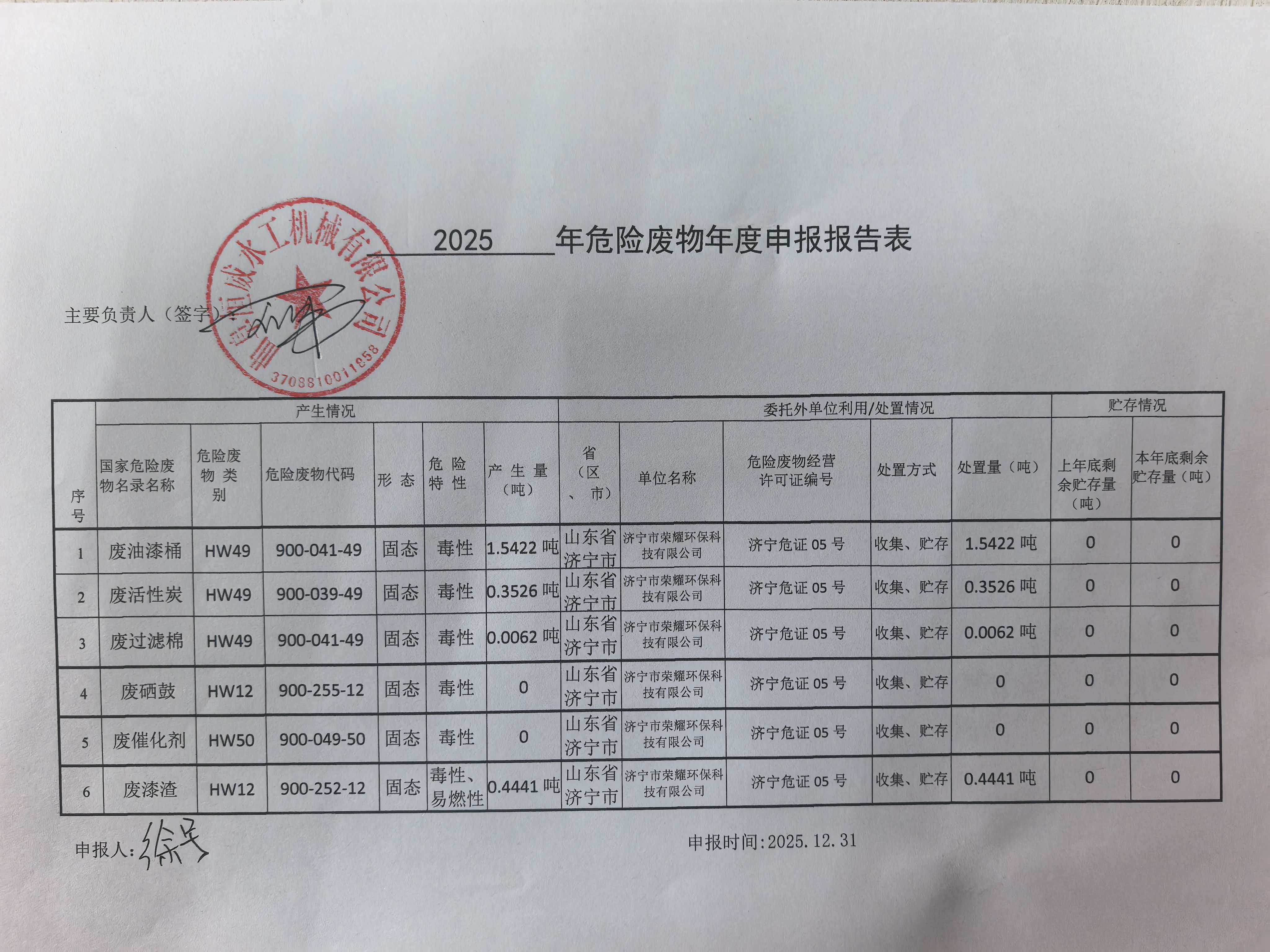 2025年度危废公示